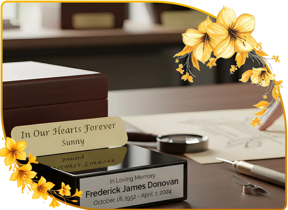 Whether you need a name plate for an urn, casket, memorial wall, or headstone, we offer elegant and durable solutions that reflect love, remembrance, and honor.
